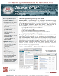 Advance|C4ISR provides organizations with the ability to identify and pursue new business aligned to their specific capabilities. Expert analyses and deep search capabilities give teams the power to find the right C4ISR business. Integrated with the entire DACIS platform, finding C4ISR business has never been easier.